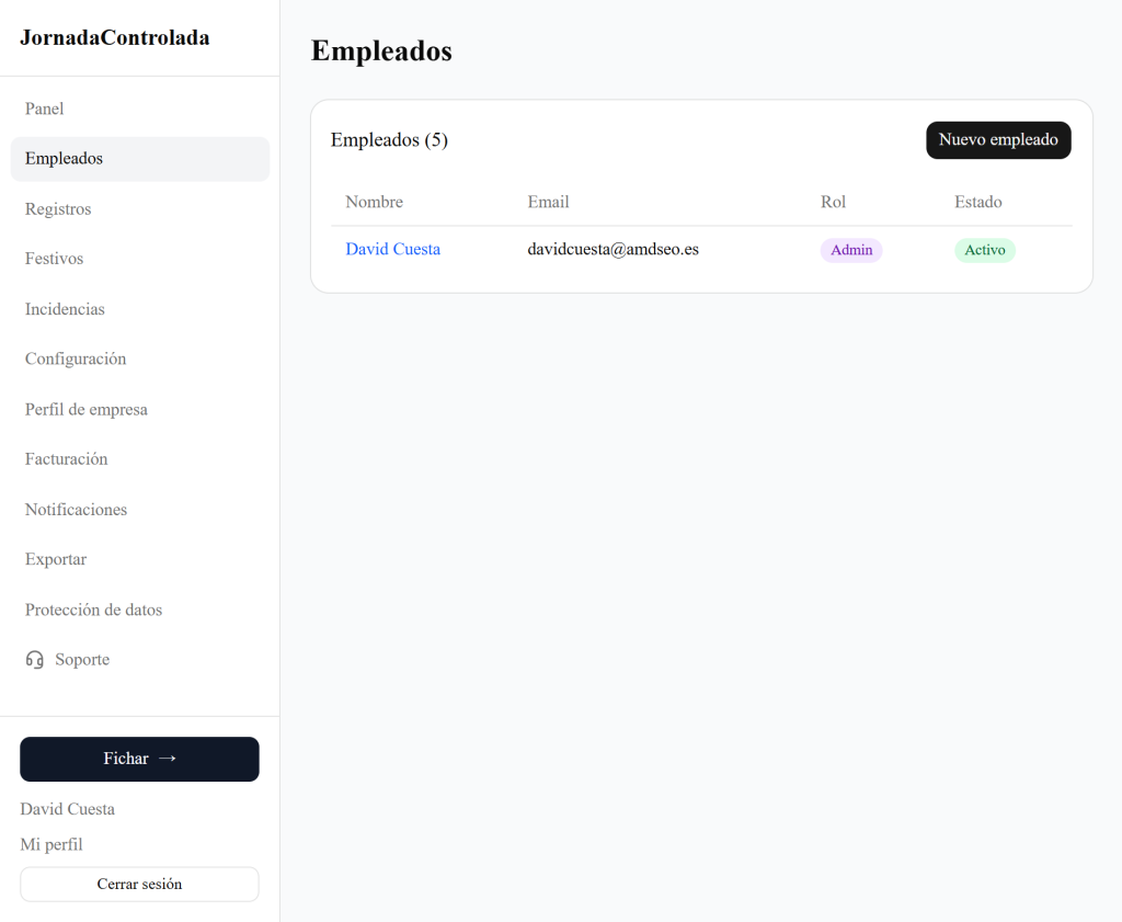 Cuando creas la cuenta en JornadaControlada, solo existe un empleado, tú mismo. Ahora necesitarás añadir al resto de empleados.