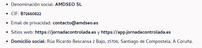Datos de contacto de JornadaControlada / AMDSEO SL: